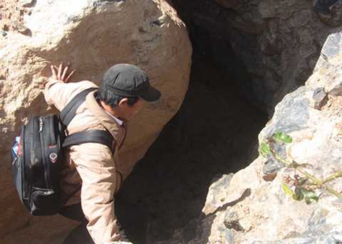 | Khe nứt được đơn vị tìm kiếm cho là cửa hang vào kho báu. Ảnh: Hoàng Trường |