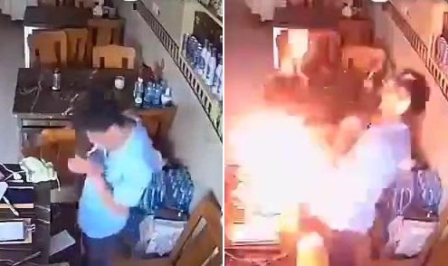 01/08/2017 07:57:00 +07:00Người đàn ông đang châm thuốc thì bật lửa bất ngờ nổ tung, lửa bùng lên khiến anh ta cháy sém mặt; sự việc xảy ra tại Trung Quốc.