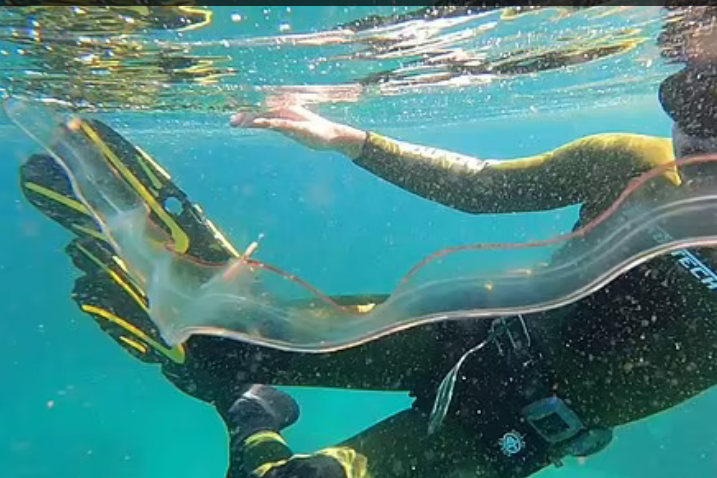 Tuần trước, thợ lặn Amy Wainman chia sẻ video ghi lại cảnh anh chạm trán một sinh vật có ngoại hình kỳ dị ở ngoài khơi thị trấn Simon, gần thủ đô Cape Town của Nam Phi.