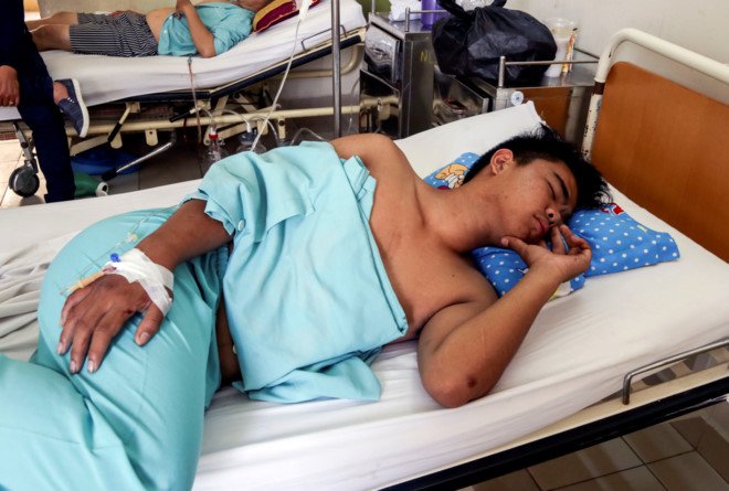 Anh Thái được mọi người đưa đi cấp cứu với vết thương thủng phổi. Sau nhiều giờ phẫu thuật, hiện sức khỏe anh này đã tạm thời ổn định.