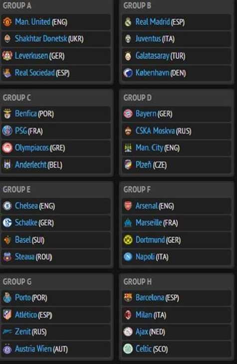 Tuy nhiên, cuộc so tài hấp dẫn nhất tại vòng bảng Champions League năm nay lại thuộc về hai cái tên "không đội trời chung" là Anh và Đức khi lá thăm may rủi khiến cho cả 4 đại diện đến từ Premier League sẽ phải chạm chán với 4 đại diện của Bundesliga bao gồm các cặp đấu: MU - Leverkusen, Bayern Munich - Man City, Chelsea - Schalke 04 và Arsenal - Dortmund.