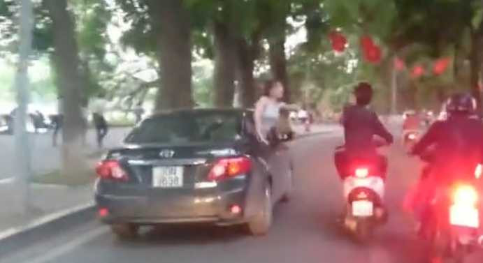 Khi chiếc Altis tới phố Lê Thái Tổ, một nam thanh niên đầu trần lái chiếc Liberty phía sau vọt lên lạng lách, đánh võng sát ôtô cổ vũ hành động của nhóm người trong xe. Người này lắc lư, hò dô theo cô gái khiến nhiều người đi xe máy cùng chiều đánh lái né tránh.