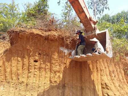 "Khi phát hiện sự việc, chúng tôi đã gọi cho Giám đốc Công ty Tiến Thanh, đơn vị nhận khai thác đất tại đây để hỏi cho rõ ngọn ngành thì họ nói: "Chúng tôi chỉ được thuê khai thác đất. Chúng tôi không có nhiệm vụ giải quyết việc này"", ông Ca cho biết.