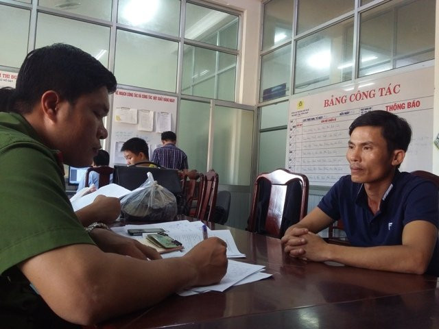 Cán bộ công an đang lấy lời khai đối với đối tượng Lộc. (Ảnh: C.A)
