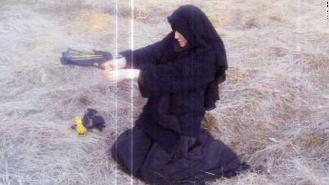 Trong thời gian đó, tung tích của Boumeddiene khá bí ẩn ngoại trừ những tấm ảnh mới được công bố. Trong đó, cô ta mặc bộ đồ che kín người, chỉ để hở một phần khuôn mặt, cầm trên tay một loại vũ khí giống như nỏ trong khung cảnh nông thôn.
