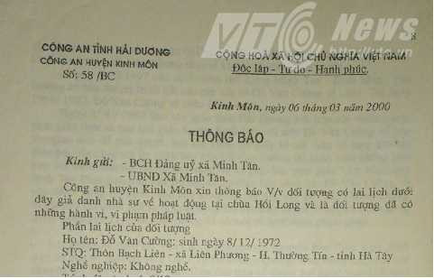 Đồng thời, công an Minh Tân cũng cung cấp cho chúng tôi một loạt văn bản của cả bên Giáo hội Phật giáo huyện lẫn bên cơ quan công an xung quanh sự việc Đỗ Văn Cường.