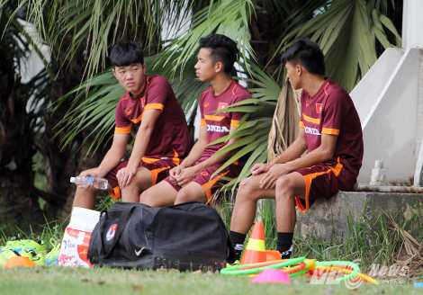 | Xuân Trường, Hồng Duy, Ngọc Thắng ngồi ngoài vì chấn thương(Ảnh: Hà Thành) |