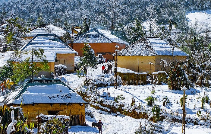 Vào những dịp đông về, nhiệt độ nơi đây hạ xuống rất thấp và thường có tuyết rơi lạnh giá. Cả bản làng như được khoác lên một lớp áo trắng tuyệt đẹp. Tuyết phủ trắng xoá từng mái nhà, tuyết tràn ngập những con đường và điểm xuyết trên những tán cây biến nơi đây thành một ngôi làng đẹp như tranh vẽ tại miền Bắc mà bất cứ ai cũng ao ước mình được đặt chân tới đây ít nhất 1 lần trong đời.
