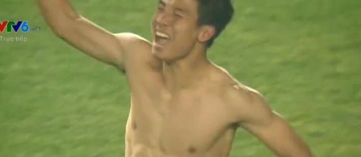 Không chỉ là người ghi bàn quyết định cho chiến thắng lịch sử cho đội tuyển Việt Nam, gương mặt điển trai, nam tính cùng thân hình 6 múi khoẻ khoắn của Tiến Dũng trong khoảnh khắc ăn mừng cũng được chia sẻ rầm rộ trên mạng.