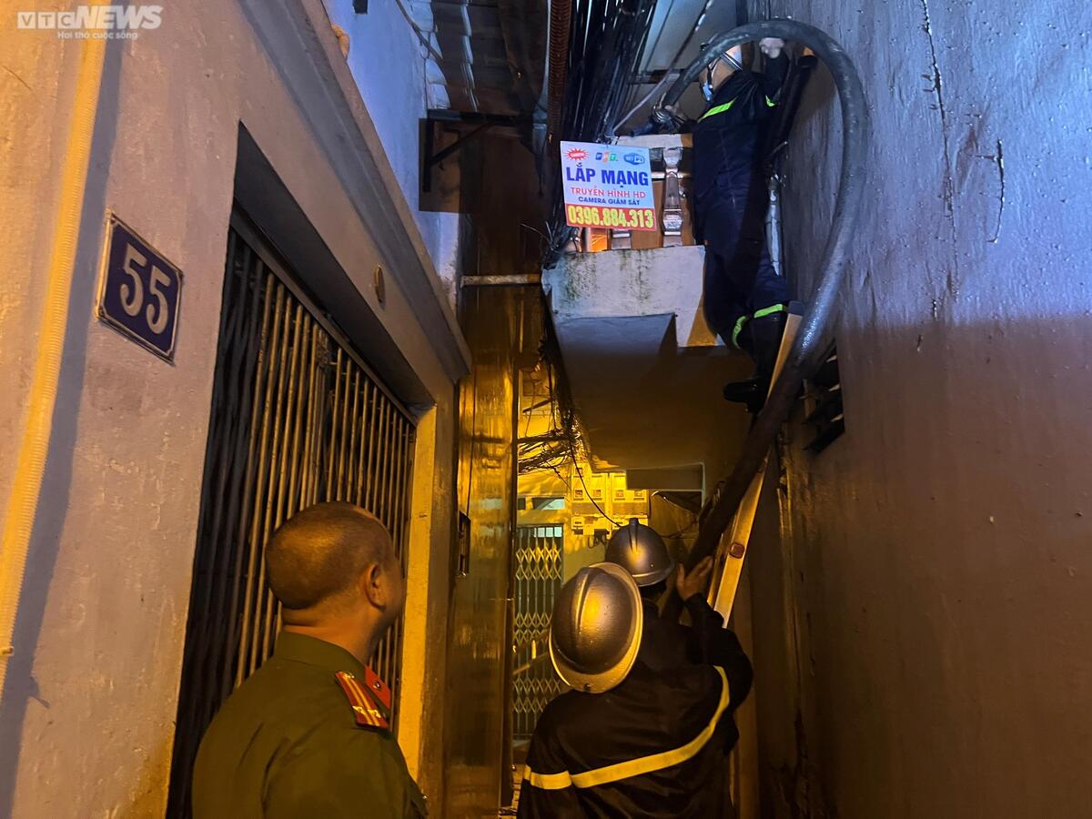 Đám cháy nằm sâu trong ngõ nhỏ, phương tiện chữa cháy chuyên dụng không thể tiếp cận. Chỉ trong vòng 3 phút, gần 2km đường ống đã được lực lượng cảnh sát Phòng cháy chữa cháy và cứu nạn cứu hộ triển khai sát vị trí đám cháy.