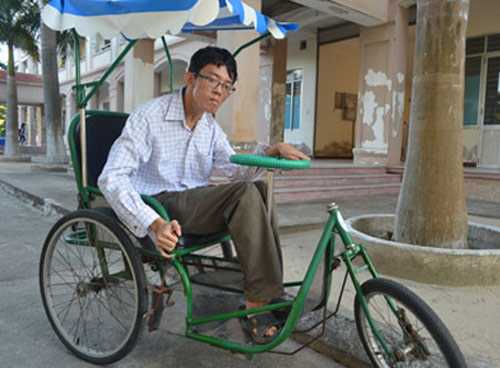 | Bảo trên chiếc xe lăn đến trường |