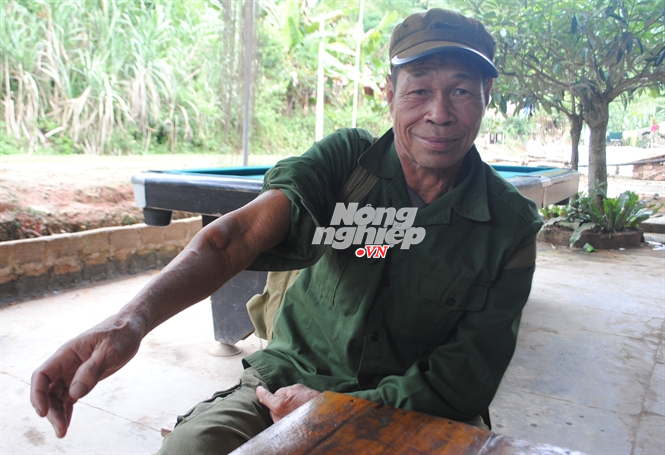 “Tôi vội vàng nhảy xuống suối, vứt cả giỏ cá mà chạy nhưng không kịp. Tôi liền rút con dao đeo bên hông tấn công lại con lợn”, ông Thướng dùng con dao nhỏ huơ huơ thuật lại động tác đánh nhau với lợn lòi.