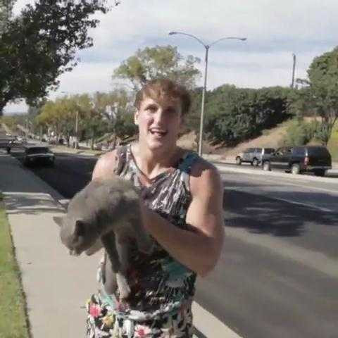 Chàng trai liều mình thực hiện các động tác nhào lộn để tránh những chiếc xe khi cứu chú mèo.
