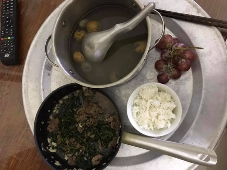 Theo đó, vì chỉ có một mình nên chàng trai này nấu một bữa cơm khá đơn giản là một món mặn và một món canh. Tuy nhiên, điều khiến mọi người chú ý là anh chàng này thậm chí không múc thức ăn ra bát mà để nguyên trong nồi và chảo rồi đặt vào mâm.