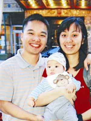 | GS Ngô Bảo Châu thăm nhà TS Phúc Cường (trên tay GS Châu là cháu Phúc Anh, con trai Phúc Cường) (Ảnh tư liệu gia đình). |