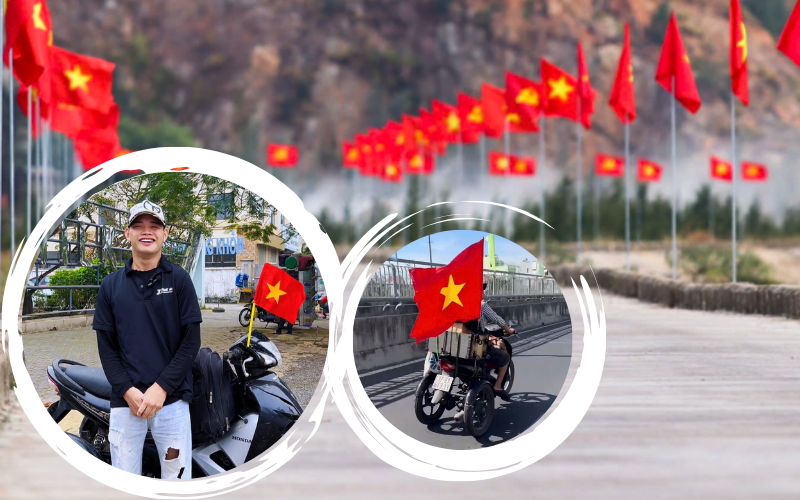 "Đây là lần thứ 3 mình đi xuyên Việt, hành trình mà đối với người tay chân lành lặn đã khó, với mình là người khuyết tật còn khó gấp nghìn lần. Hành trình xuyên Việt lần này đặc biệt hơn cả vì mình sẽ đến TP.HCM để xem lễ diễu binh, diễu hành kỷ niệm 50 năm Ngày Giải phóng miền Nam. Mình muốn có mặt để tham gia sự kiện đặc biệt 50 năm mới có một lần này", Quân chia sẻ.