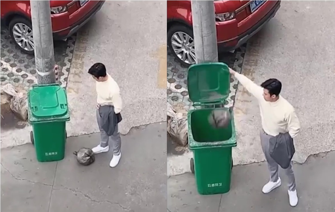 Chàng trai lịch lãm vứt rác mãi không xong