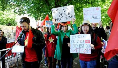 Trong đoàn người biểu tình sáng 17/5 vừa rồi trước Đại sứ quán Trung Quốc tại Brussels nhằm phản đối chính quyền Trung Quốc hạ đặt giàn khoan HD-981 trái phép trong vùng đặc quyền kinh tế và thềm lục địa của Việt Nam có khá nhiều người nước ngoài.