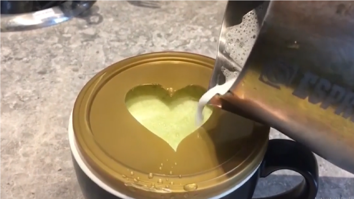 Cố gắng hết sức vẫn thất bại trong việc trang trí hình trái tim cho ly đồ uống, chàng trai tức giận phá hỏng toàn bộ.