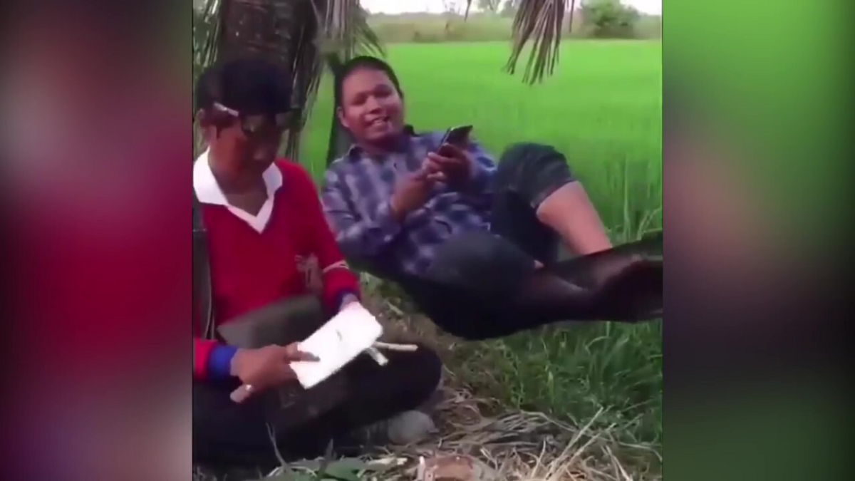 Giọng hát của anh chàng trong clip "đáng sợ" đến nỗi nó trở thành nguyên nhân khiến "khổ chủ" bị rơi từ võng xuống ruộng.