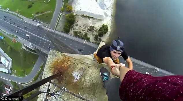 Đoạn video James thoát chết thần kỳ từ độ cao hơn 100m chỉ nhờ nắm tay người bạn đồng hành của mình đã chiếu với lời cảnh báo đối với người xem.