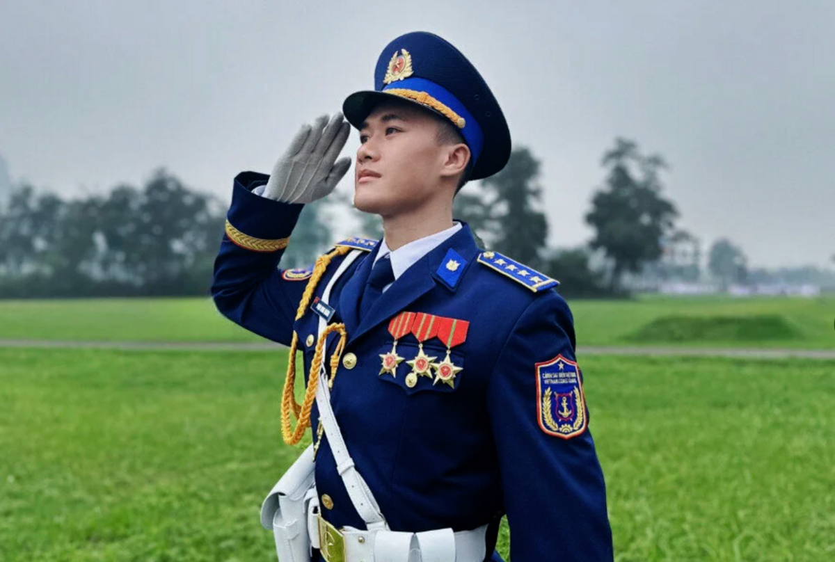 Trung uý Phạm Minh Quang (25 tuổi, quê ở Cao Bằng) đang là gương mặt gây sốt mạng xã hội sau khi tham gia diễu binh, diễu hành khối cảnh sát biển nhân kỷ niệm 70 năm Chiến thắng Điện Biên Phủ. Sở hữu chiều cao 1m80 cùng gương mặt đẹp trai, Minh Quang được dân mạng đặt cho biệt danh "Chàng quân nhân soái ca".