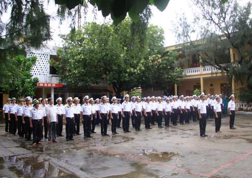 Trong khi đó, ở những đảo chìm, chỗ đứng làm lễ chào cờ chỉ là khoảng sân nhỏ. Có đảo phải chào cờ trong hội trường hay trên sân thượng. Cũng vì đảo chật nên lễ chào cờ được lược bớt phần duyệt đội ngũ.