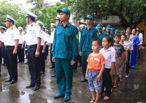 "Thời tiết ở Trường Sa nắng mưa thất thường. Nhiều hôm đang làm lễ chào cờ thì trời đổ mưa. Để mặc mưa và gió hắt vào mặt, anh em vẫn dõng dạc hát Quốc ca, hoàn thành trọn vẹn lễ chào cờ", thượng úy Nguyễn Đình Dinh đảo Cô Lin kể và tâm sự, mỗi lần về nghỉ phép anh lại nhớ tới sáng thứ hai, nhớ các đồng đội. Cảm xúc đó đã thôi thúc anh hơn 10 năm gắn bó với Trường Sa.