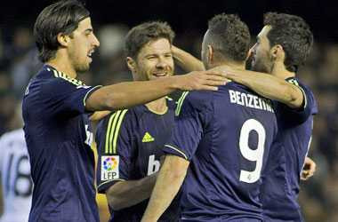 Tưởng như Real sẽ bị thủng lưới sớm từ những pha tấn công nguy hiểm của Valencia. Thế nhưng, Adan đã chơi xuất sắc để cứu thua cho đội nhà, tạo điều kiện cho tuyến trên thi đấu vững vàng hơn. Phút thứ 43, sau nhiều nỗ lực, Benzema sút tung lưới đối phương, mở tỉ số trận đấu.