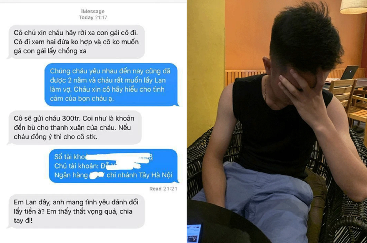 "Thanh niên trẻ tuổi - em mình đang khóc vì tham tiền không chữa được. Ai đời mẹ người yêu bảo chia tay đi rồi bà ấy cho 300 triệu tiền đền bù, ông em xử lí thế này. Xét về lý thì sai nhưng xét về tình thì em cũng không đúng chỗ nào.