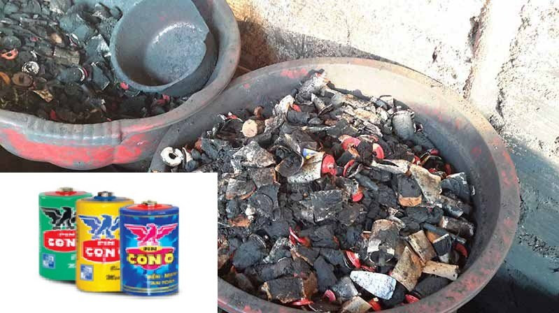 Chất màu đen trong pin Con Ó tại cơ sở sản xuất cà phê ở Đắk Nông.