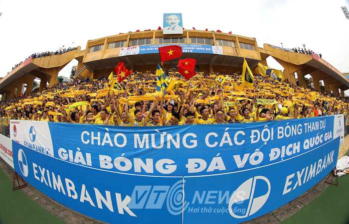 | Sắc vàng rực rỡ phủ kín khán đài B sân Hàng Đẫy. Một hình ảnh vô cùng ấn tượng (Ảnh: Quang Minh) |