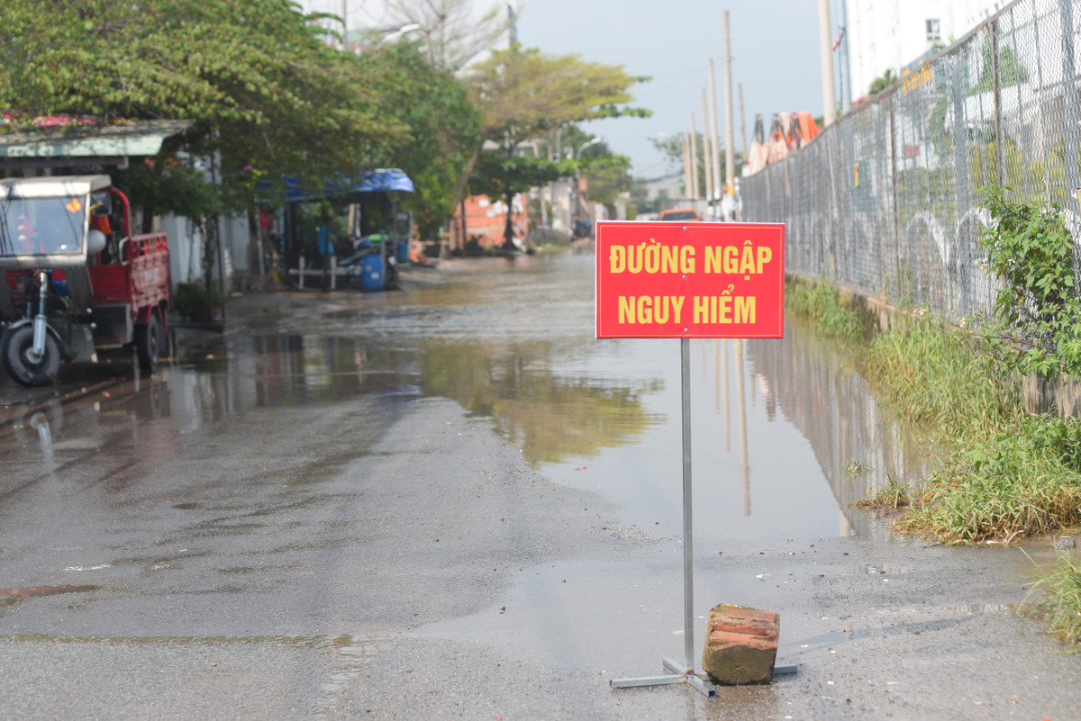 Bà Nguyễn Thị Thanh Loan, Chủ tịch UBND phường Linh Đông cho biết, nguyên nhân của ngập nước từ tối qua đến sáng nay là do thi công lắp đặt cống hộp chống ngập. Trong quá trình thi công lượng nước triều dâng lên quá cao so với dự kiến khiến cống bị vỡ, nước từ sông tràn vào đường này.