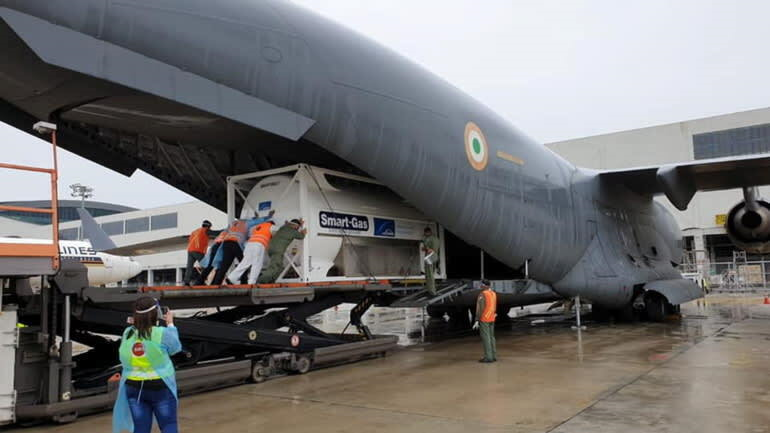Hôm 28/4, hai máy bay C-130 của Không quân Singapore chở oxy tới bang Tây Bengal của Ấn Độ để hỗ trợ New Delhi chống dịch.