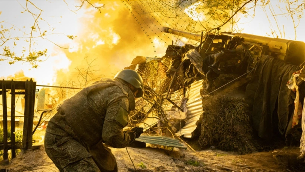 Pháo tự hành 2S5 Giatsint-S của Nga khai hỏa gần thành phố Pokrovsk (Krasnoarmeysk). Ảnh: Sputnik