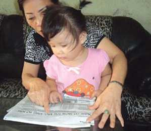 Để kiểm chứng, chúng tôi lấy ra vài tờ báo rồi bảo bà nội bé cho cháu đọc. Bà nội bé đặt tờ báo rồi bảo “Châm đọc cho bà nghe nào”, rồi bà chỉ lần lượt từng dòng chữ và bé cứ thế đọc theo một cách chính xác, trôi chảy. Nhưng đọc được khoảng chục dòng thì bé Bích chán không chịu đọc tiếp. Khi bà nội cầm ra một quyển truyện tranh thì bé lập tức giở sách đọc những chữ trong truyện.