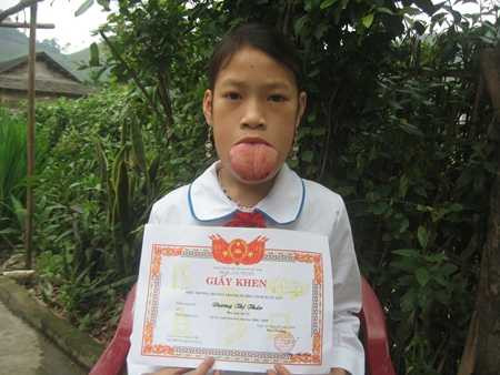 Lúc nào răng cũng cắn vào lưỡi, mỗi lần ăn uống, nuốt nước bọt hay thậm chí đến cả hít thở cũng trở nên vô cùng khó khăn. Ấy vậy mà 9 năm liền Thảo đều đạt học sinh giỏi của trường THCS Phương Giao và được các thầy cô hết sức yêu mến.