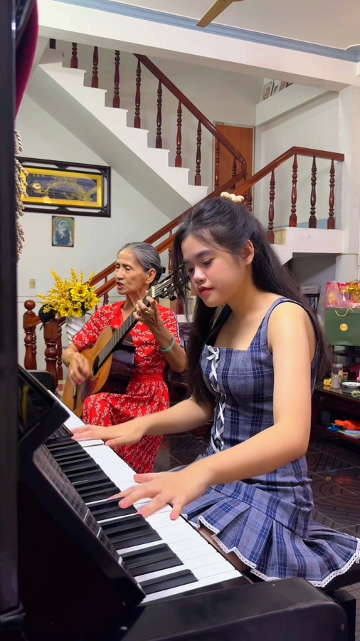 Cháu gái cùng bà nội U70 vừa đàn vừa hát gây sốt mạng xã hội