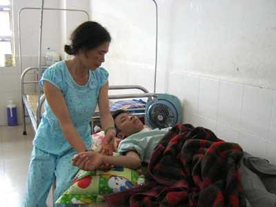 | Em Lâm và mẹ khi còn ở bệnh viện. |