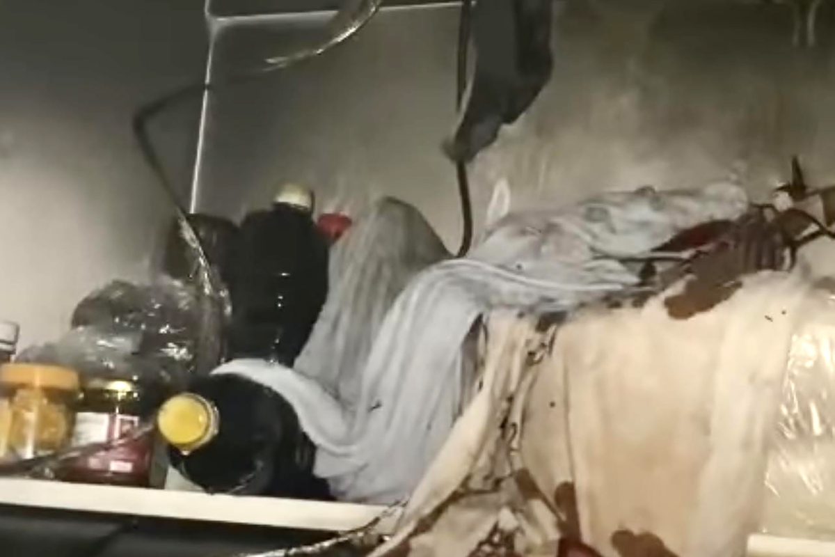 Chỉ ít phút sau khi phát hiện vụ cháy, lực lượng an ninh của chung cư đã dập tắt ngọn lửa. Vật dụng bếp trong căn hộ bị hư hỏng. (Ảnh: CTV).