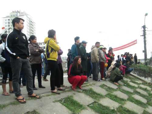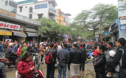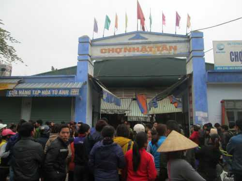 | Người dân vây kín cổng chợ Nhật Tân. |
