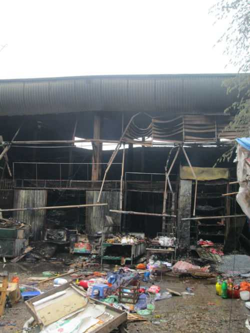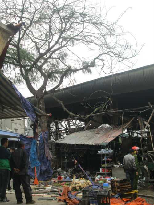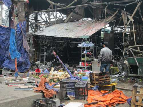 | Cổng phụ chợ Nhật Tân nơi đám cháy bắt đầu bùng phát. |
