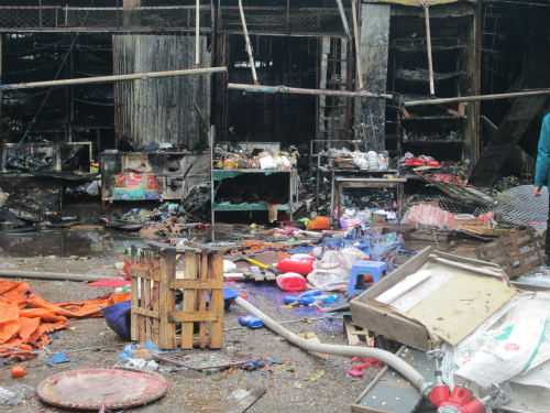 Cũng theo bà Loan, lúc ngọn lửa mới bùng phát, các tiểu thương trong chợ đã dùng nước tại chỗ để dập lửa. Tuy nhiên, do hàng hóa trong chợ phần lớn là đồ dễ cháy như quần áo, giày dép nên ngọn lửa nhanh chóng lan rộng.