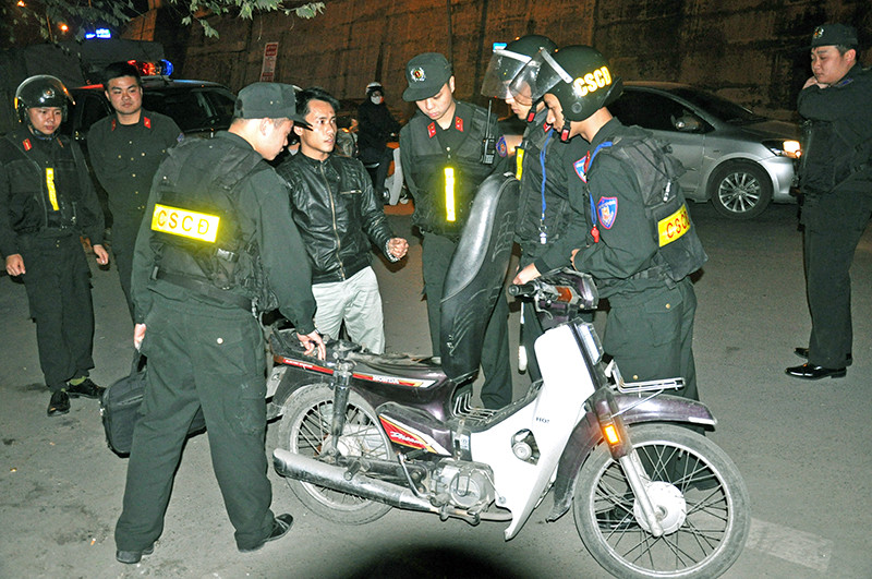 Vào khoảng thời gian trên, tổ công tác Y2/141 (Công an TP.Hà Nội) đang làm nhiệm vụ chốt chặn, trấn áp tội phạm phát hiện hai nam thanh niên điều khiển xe máy không đội mũ bảo hiểm nên đã ra tín hiệu dừng phương tiện để kiểm tra hành chính.