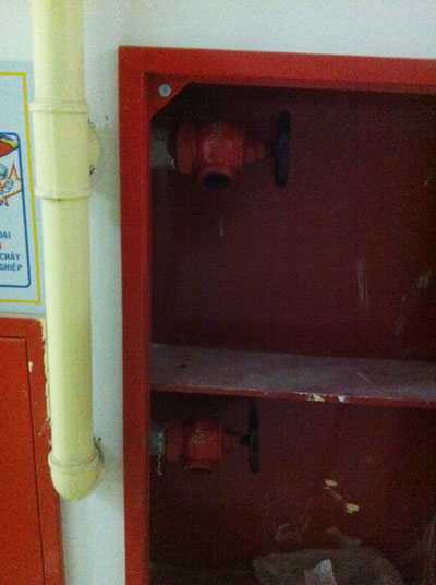 | Tủ cứu hỏa trống trơn, không có bình bọt. Điều này khiến người dân dù phát hiện đám cháy sớm, xong cũng đành "bó tay" |