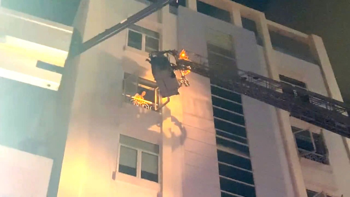 Lực lượng chữa cháy chia nhiều mũi dập lửa, đồng thời sử dụng xe thang cao khoảng 50m tiếp cận giải cứu những người mắc kẹt trên các tầng cao kịp thời.
