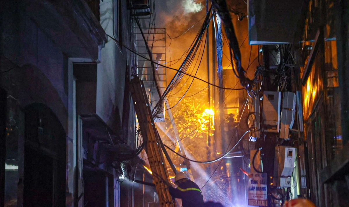 Hiện trường vụ cháy chung cư mini ở phố Khương Hạ.