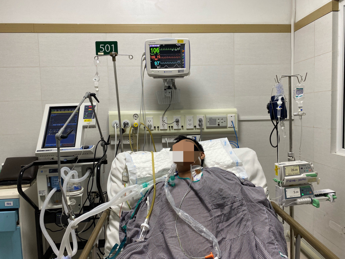 Nam bệnh nhân nặng nhất đang điều trị tại Khoa Hồi sức tích cực Bệnh viện Bạch Mai. (Ảnh: Nguyễn Ngoan)