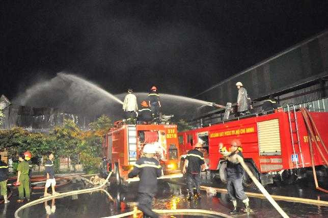 Khoảng 21giờ15, nhân viên công ty mới gọi PCCC. 30 phút sau, lực lượng PCCC Q.Bình Tân, KCN Tân Tạo có mặt tại hiện trường, nhanh chóng triển khai lực lượng, tiến hành phun nước chữa cháy. Nhận định đây là vụ cháy lớn, nhà xưởng rộng, chứa các vật liệu dễ cháy nổ, với tính chất nghiêm trọng… lực lượng chữa cháy đã cấp tốc gọi các đội PCCC khu vực và trung tâm tiếp ứng.