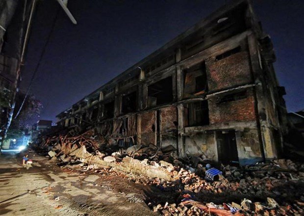 Nhà xưởng chỉ còn là đống đổ nát sau vụ cháy Công ty Rạng Đông. (Ảnh: Thành Đạt/TTXVN)